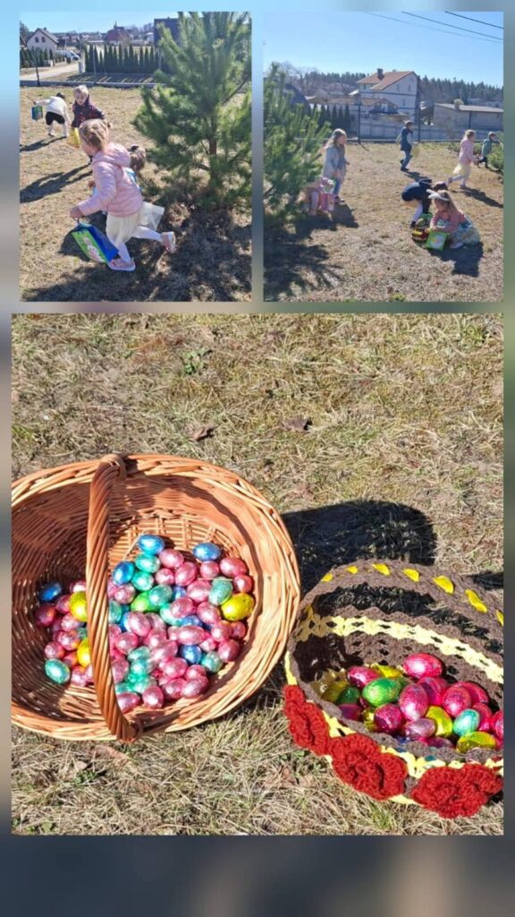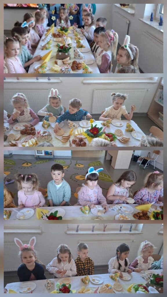 Śniadanko wielkanocne w naszym przedszkolu. Po wspólnym posiłku dzieci z radością szukały Zajączka, zbierały czekoladowe jajeczka i zaśpiewały dla niego piosenkę 🎶 3 kwietnia 2026